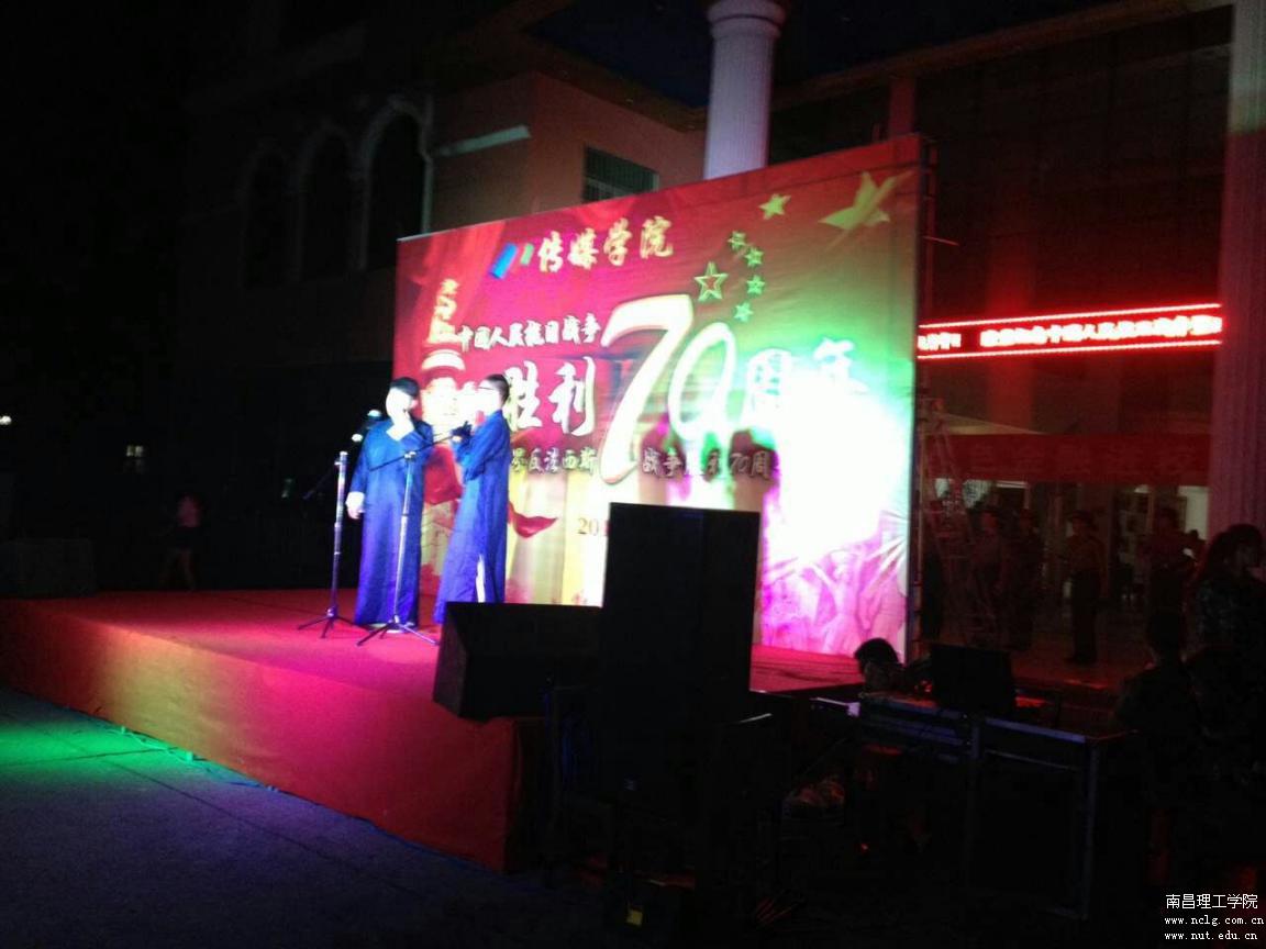 2015年9月3日,传媒学院军训营举办“中国抗日战争暨世界反法西斯战争胜利70周年”主题教育晚会。