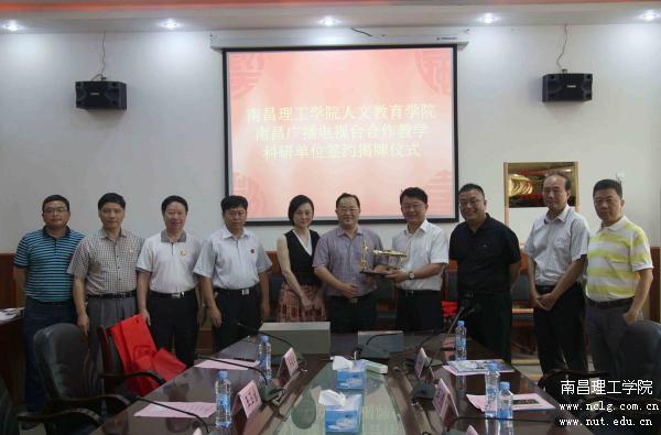 6月26日上午,南昌理工学院人文教育学院与南昌广播电视台合作教学科研单位签约揭牌仪式在理工大厦三楼会议室举行。