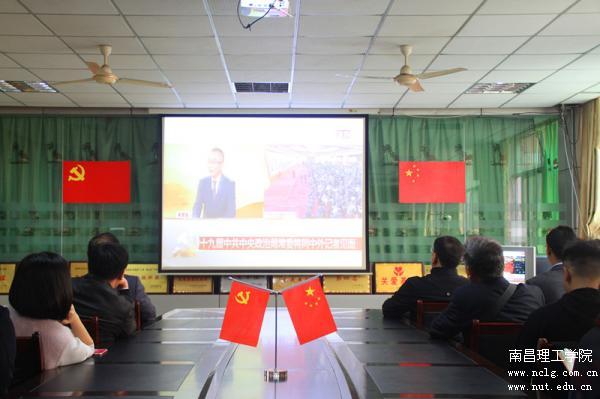 图为副校长,学院院长、党总支书记邓荣春参加集中收看