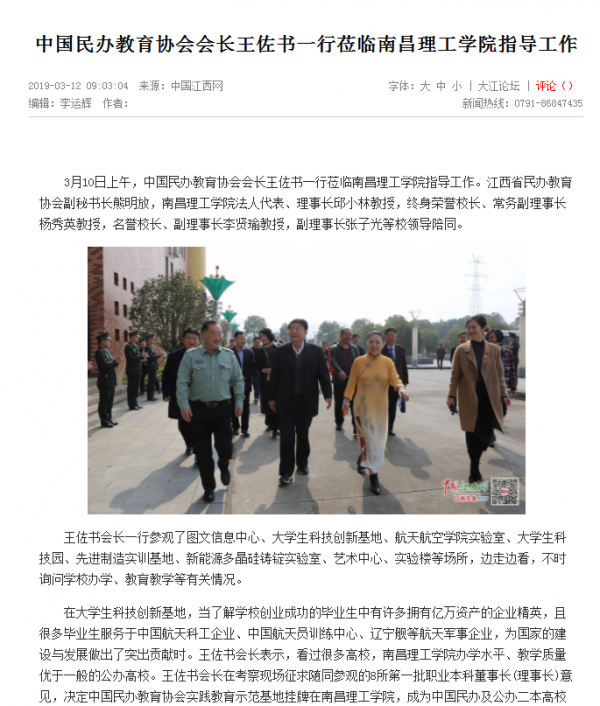 媒体关注中国民办教育协会会长王佐书一行莅临南昌理工学院指导工作