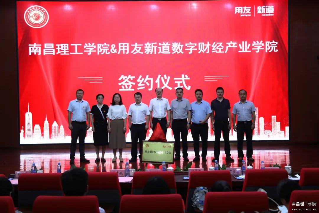 随后,用友新道科技股份有限公司华中区域总经理丁立波与南昌理工学院校长范彦斌教授共同签订共建合作协议;用友新道科技股份有限公司副总裁兼教育研究院院长宋健与南昌理工学院副理事长邱震钰共同为数字财经产业学院揭牌。