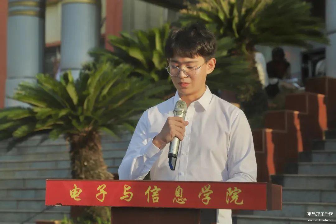 学院党委书记吴熊伟在讲话中强调,青年大学生应“施人慎勿念,受施慎勿忘”,要记住国家、学校在培才育人中所作出的不懈努力,以实干展示自己的决心、担当,以知行合一、求真好学的态度,发扬创新精神。他向同学们提出四点要求:一是要志气高远,将青春理想与奉献祖国相结合,争做一名有理想的大学生;二是要底气十足,将青春理想与学业精进相结合,争做一名有本领的大学生;三是要心怀感恩,将奋起之志与努力奋进相结合,要争做一名有担当的大学生;四要以榜样树学风,营造“比学赶超”的浓厚氛围,营造“人人学习榜样,处处看齐先进”的良好氛围。最后,他希望大家携青春之梦想,怀报国之志向,乘时代之东风,努力学习、勤奋工作、凝心聚力、守正创新、踔厉奋发、逐梦前行!