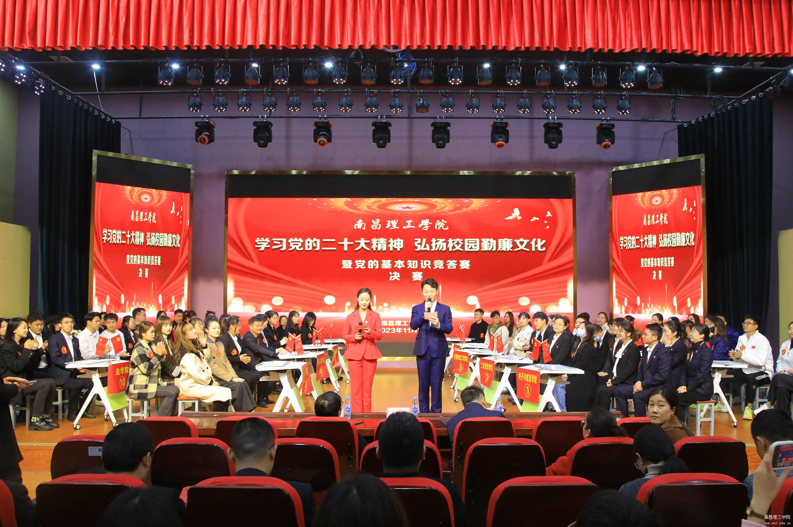 为深入学习贯彻党的二十大精神和习近平总书记考察江西重要讲话精神,11月28日下午,南昌理工学院“学习党的二十大精神,弘扬校园勤廉文化”暨党的基本知识竞答赛决赛在新教学楼音乐厅举行。校党委副书记、纪委书记丁良喜博士,校党委委员、组织部长占莉萍出席活动。党务督导工作部、党委组织部、党委宣传部、校团委等部门负责同志,各学院党委(党总支、直属党支部)书记、专职组织员、师生代表到场观赛。