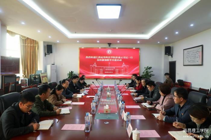 座谈会上,党委书记、督导专员许基南致欢迎词,对江西应用科技学院党委书记彭迪云和相关部门负责人一行莅临我校开展联学共建活动表示热烈欢迎,并详细介绍了南昌理工学院基本情况和党建与思政工作的基本做法及特色亮点。