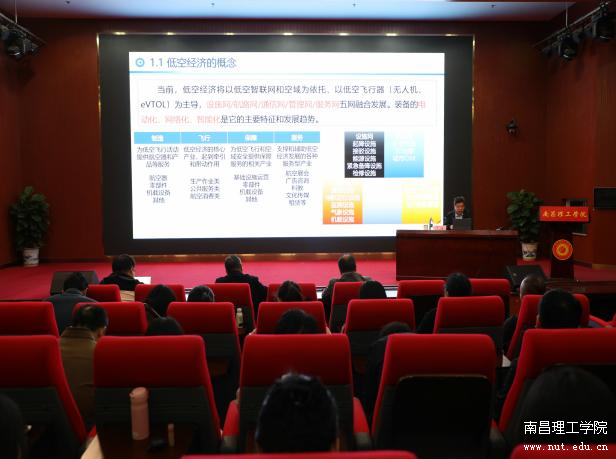 讲座伊始,秦江教授系统阐述了低空经济的概念内涵、战略意义、政策导向与发展布局。随后,他结合江西省在低空经济领域的政策支持、产业基础及应用场景,深入剖析了区域低空经济的发展路径与潜在机遇。秦江教授指出,江西依托扎实的航空制造基础、丰富的企业资源与人才储备,在对接国家低空经济战略中具备显著优势,也为我校关学科发展和人才培养提供了明确方向。