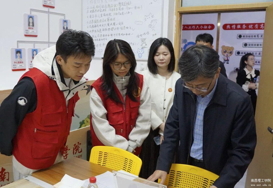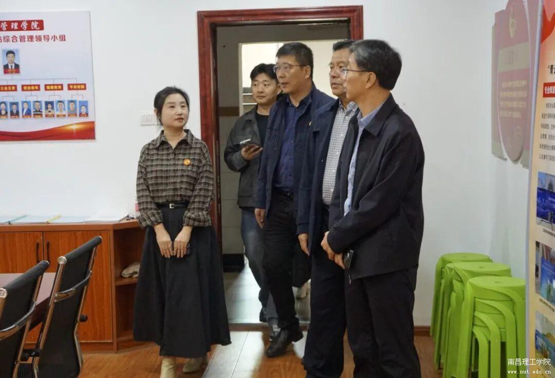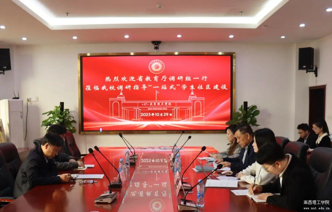 根据《2024-2025学年江西省高校“一站式”学生社区建设等级评定方案》要求,全省高校已完成云平台系统自评与省外专家线上评审。为更好的了解各高校“一站式”学生社区建设情况,近日,省教育厅调研组(由南昌大学学工委办副主任邱晓辉、南昌大学学工部队伍科副科长张志豪带队),专程赴南昌理工学院开展“一站式”学生社区建设实地调研。南昌理工学院党委书记、督导专员万年辉对调研组的到来表示热烈欢迎,党委委员、副校长黄学光,学校相关职能部门负责人陪同参与本次调研。