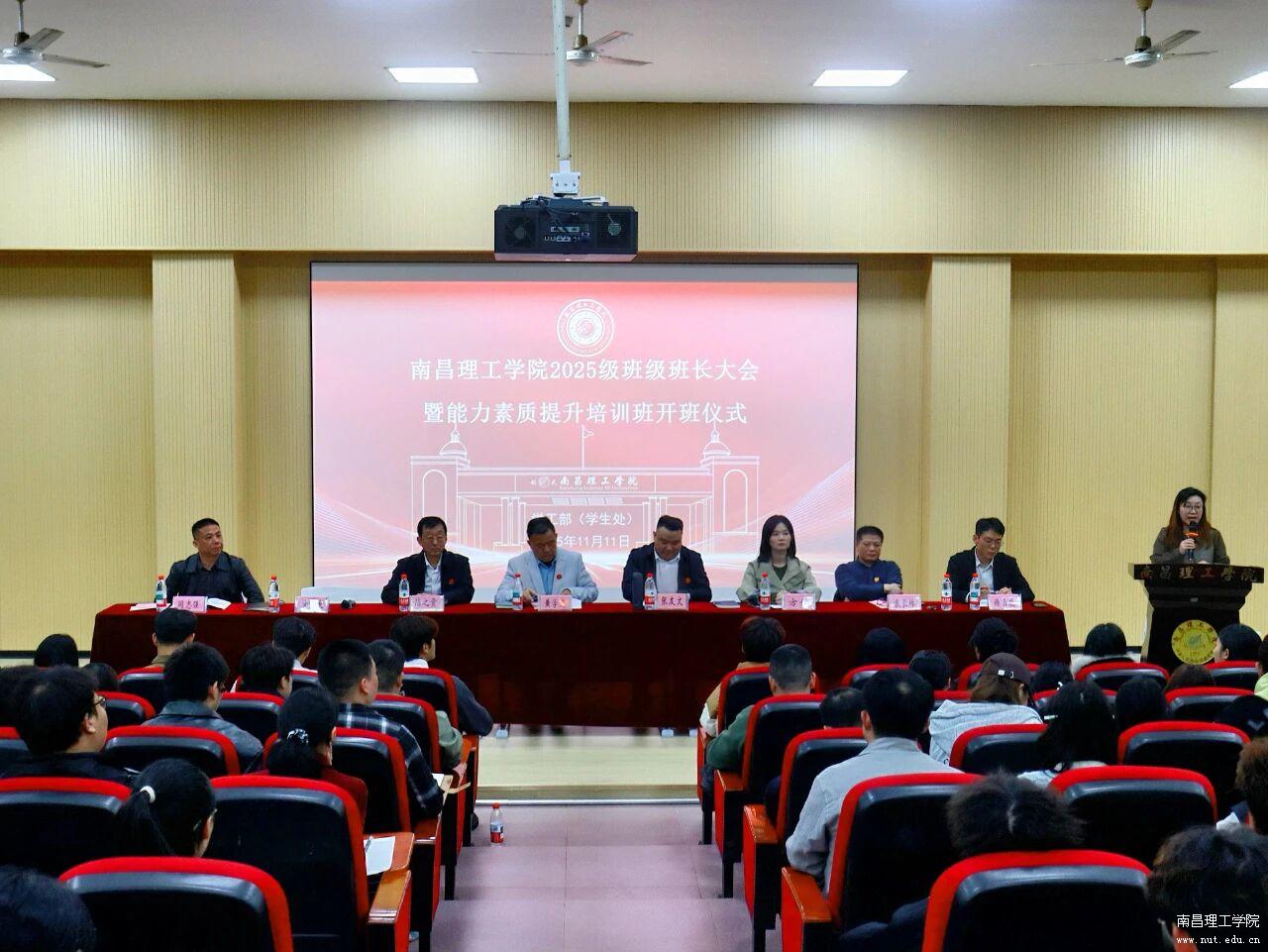 榜样引领,挺膺担当。11月11日下午,南昌理工学院在E栋208报告厅举行2025级班级班长大会暨能力素质提升培训班开班仪式。党委委员、副校长黄学光出席会议并讲话,学工部(学生处)全体人员、各学院学工科长和2025级全体班级班长参加会议,会议由学工部(学生处)副部长刘姝主持。