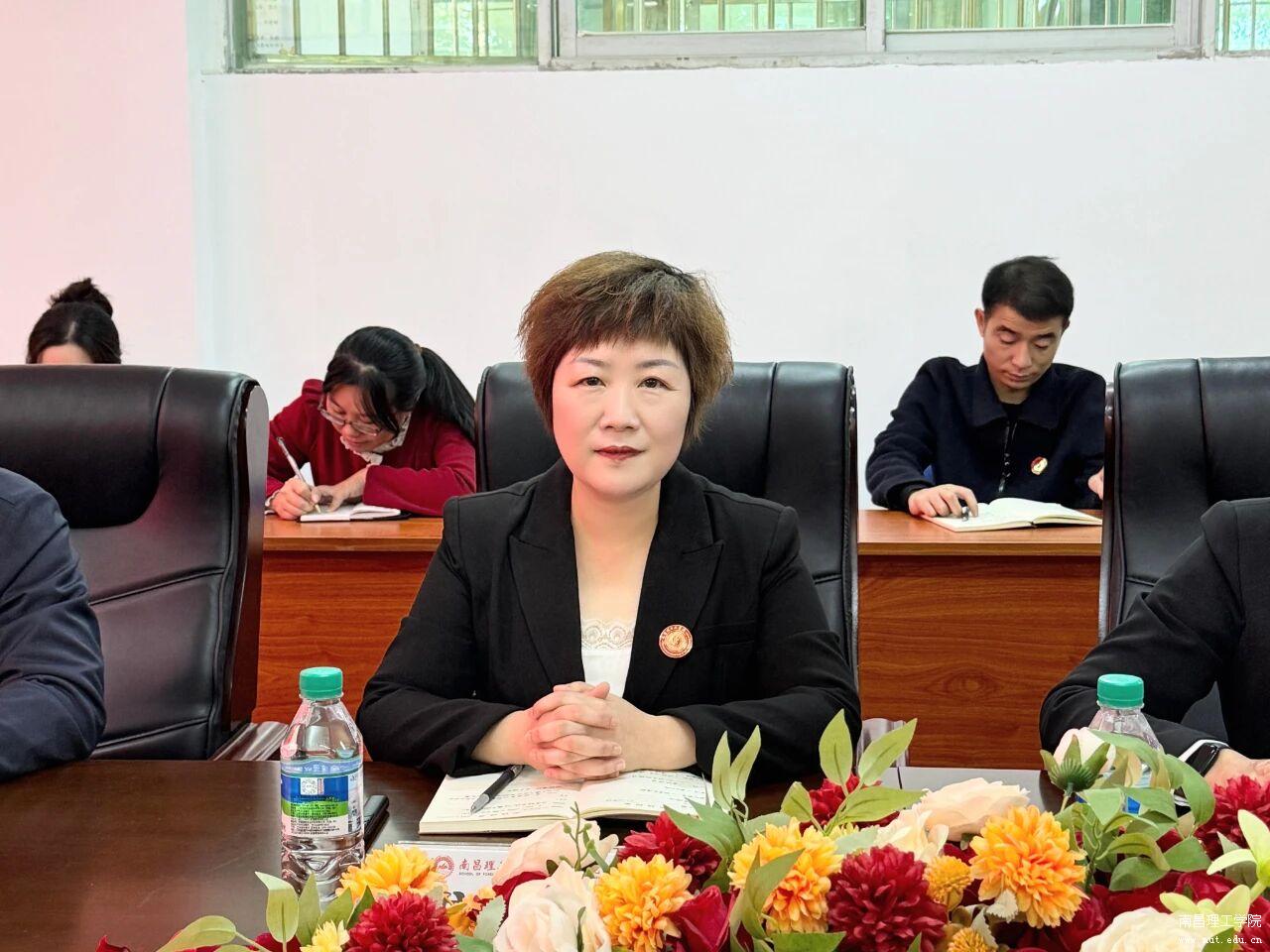 会上,外国语学院院长龚玲芬汇报了学院工作。她表示,在学院党委的领导下,通过将课程思政融入全过程、充分发挥党支部和党员作用,学院在人才培养上取得显著成效,学生竞赛与考研成绩突出,有力证明了党建引领对教学成果的关键支撑作用。