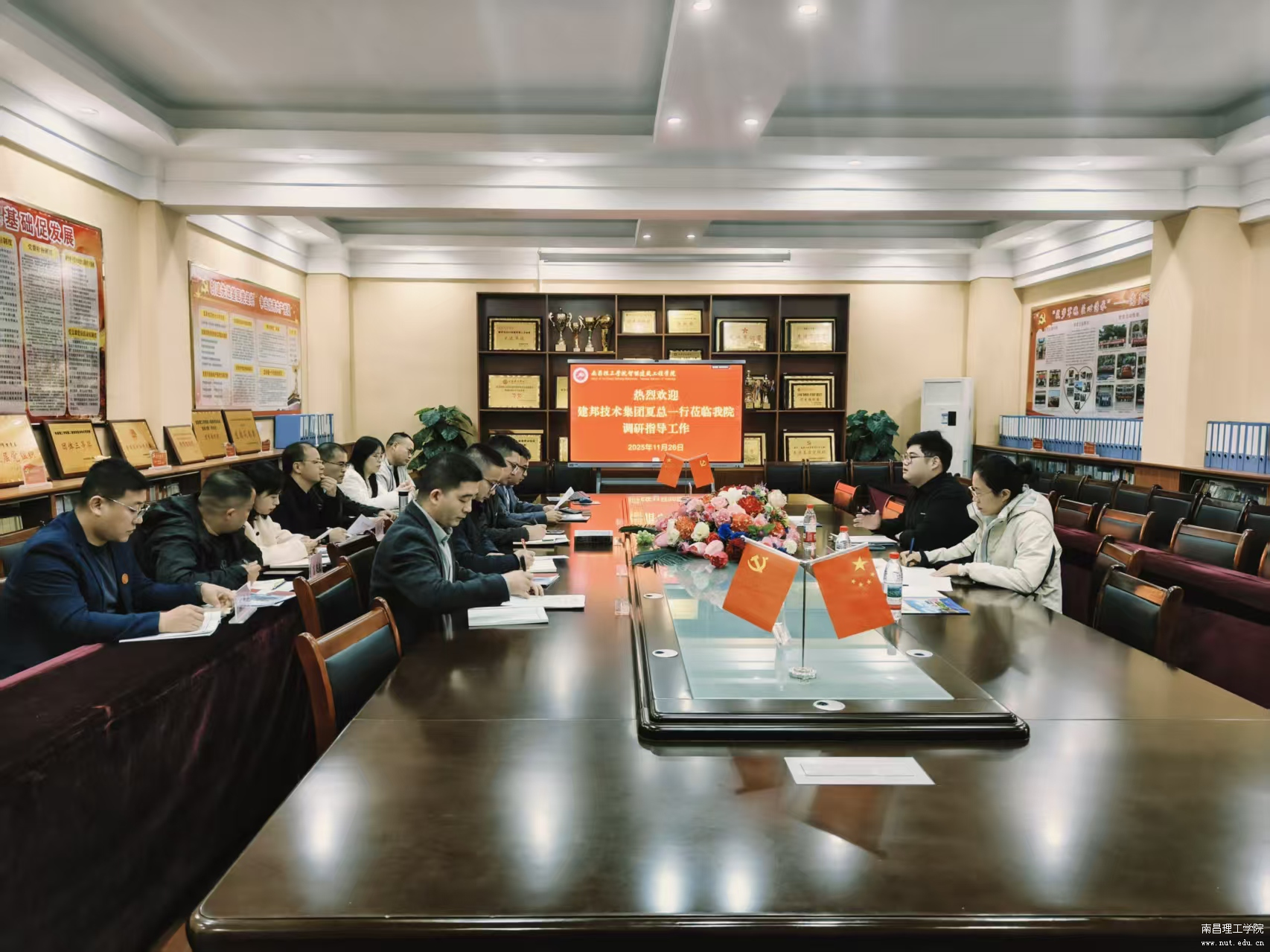 会议伊始,院长冷超群对建邦技术集团代表团的到访表示热烈欢迎,并系统介绍了学院在学科建设、师资队伍、科研平台等方面的最新发展。建邦集团带队领导夏天阐述了此次交流的背景与目的,强调集团高度重视与高校在前沿技术研发与高质量人才培养方面的长期合作,期待通过资源共享与优势互补,实现双向赋能、协同共赢。