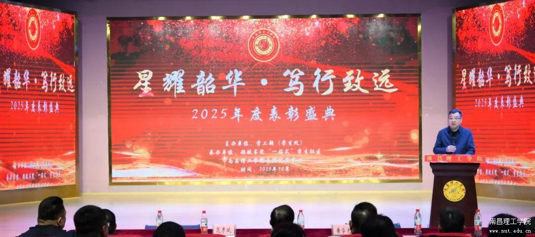 星耀韶华·笃行致远。12月16日下午,南昌理工学院在新教学楼音乐报告厅隆重举行2025年度学生工作颁奖典礼。校党委书记、督导专员万年辉,校长范彦斌,党委委员、副校长黄学光等校领导出席典礼。学工部(学生处)全体人员和各二级学院党委书记或副书记参加。