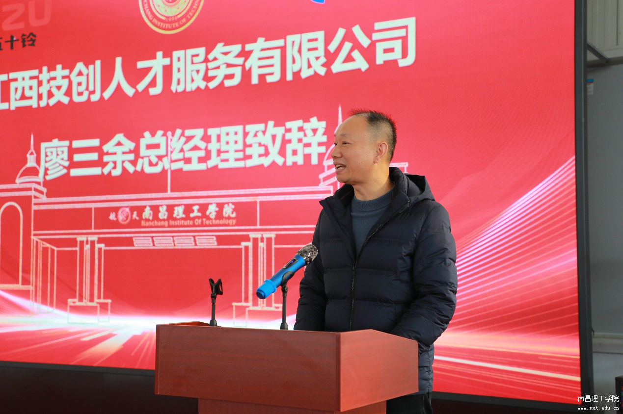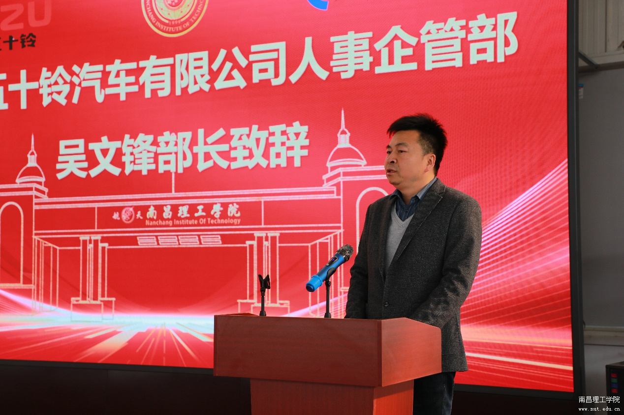 仪式上,江西技创人才服务有限公司总经理廖三余、江西五十铃汽车有限公司人事企划部部长吴文锋先后致辞。他们表示,新能源汽车现代产业学院的成立,是响应国家深化产教融合政策、服务江西新能源汽车产业集群发展的重要举措。通过整合高校学科资源、企业实战经验与人才服务平台,将有力推动“学、产、用”一体化融合,为产业升级培养更多高素质、应用型技术技能人才。