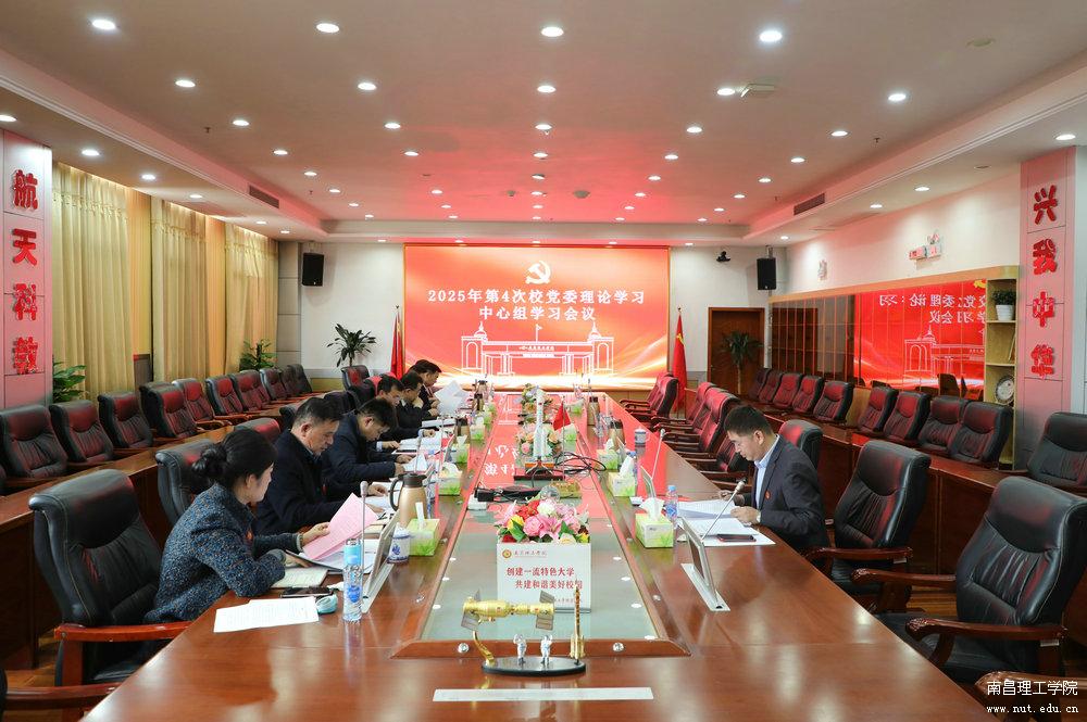 2025年3月31日上午,南昌理工学院在图文信息中心五楼会议室召开2025年度第4次校党委理论学习中心组学习会。校党委书记、督导专员万年辉主持会议并讲话;校党委副书记、校长范彦斌,校党委副书记、纪委书记丁良喜出席会议;全体党委委员参加会议。