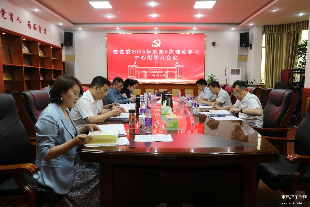 2025年5月16日,南昌理工学院在理工大厦三楼会议室召开2025年度第6次校党委理论学习中心组学习会。校党委书记、督导专员万年辉主持会议并讲话;校党委副书记、校长范彦斌,校党委副书记、纪委书记丁良喜出席会议;全体校党委委员;党政办、党委组织部、党委宣传部、党委统战部等部门主要负责人参加会议。