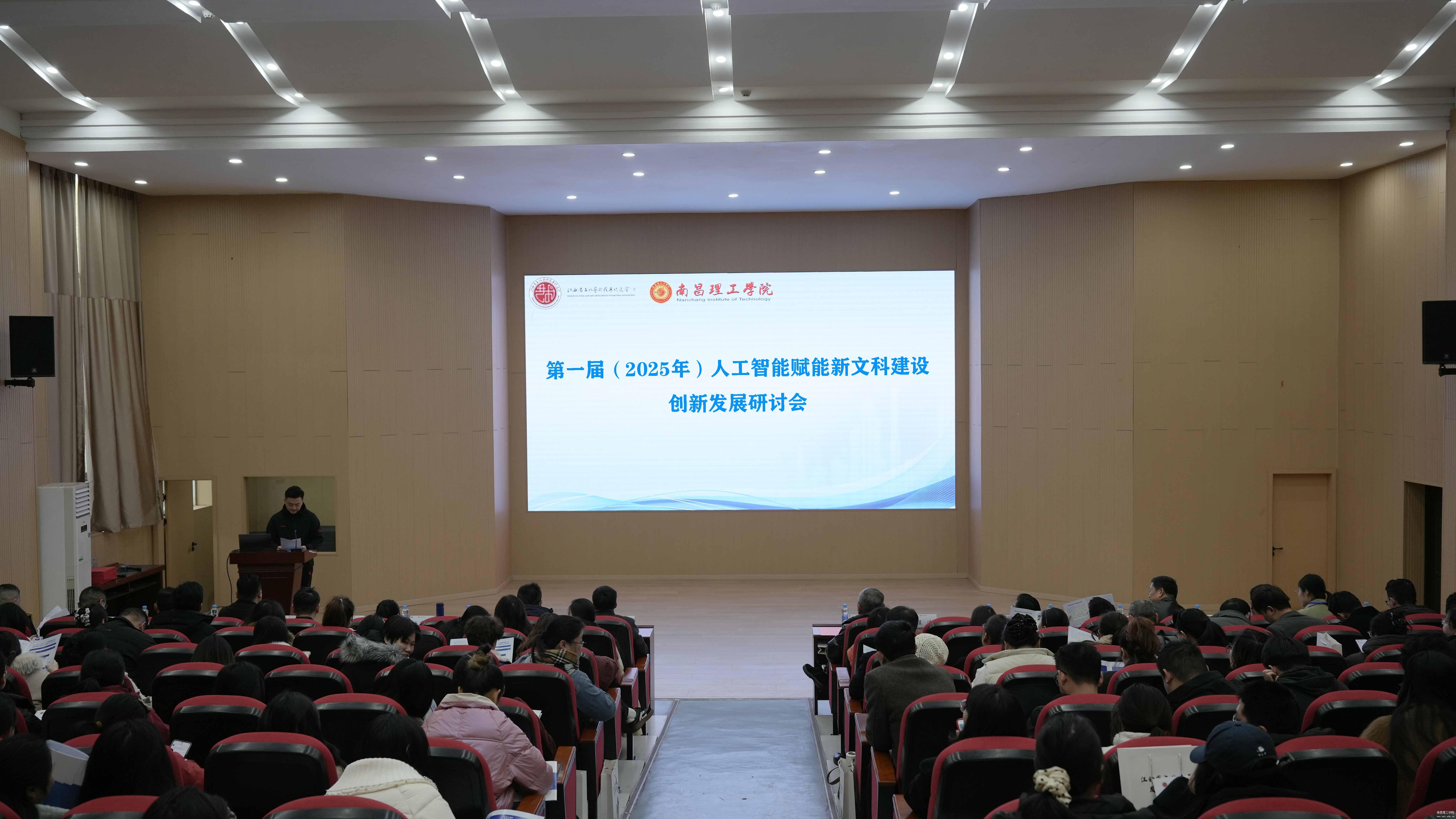 2026年1月10日,第一届(2025年)人工智能赋能新文科建设创新发展研讨会在南昌理工学院实验中心201报告厅举行,此次研讨会由江西省文化艺术发展促进会、南昌理工学院联合主办,南昌理工学院科研处、学报编辑部、马克思主义学院、党委宣传部、人才办、博士后创新实践基地承办,臻数文化传媒(江西)有限公司协办。江西省文化艺术发展促进会执行会长程波,党支部书记、副会长谢攀,南昌理工学院副校长苑鸿骥,党委副书记丁良喜出席会议,相关学院和处室负责人以及100余名投稿作者参会,会议由科研处处长白书华主持。