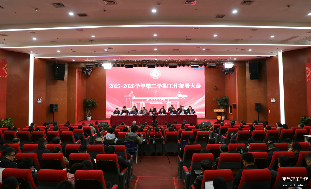 春潮涌动启新篇,奋楫扬帆正当时。为统一思想、明确任务、压实责任,确保新学期各项工作高起点开局、高质量推进,2026年3月3日下午,南昌理工学院在航天报告厅召开2025-2026学年第二学期工作部署大会。学校理事长、法人代表邱小林教授,校长范彦斌教授及全体校领导出席会议,副处级以上中层干部、副教授以上专职教师参加会议。会议由党委副书记丁良喜教授主持。