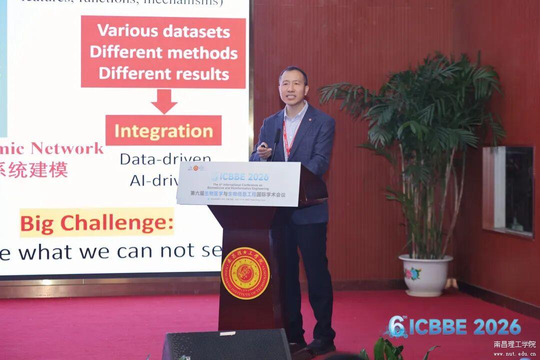 2026年4月18日,2026年生物医学与生物信息工程国际学术会议在南昌理工学院航天报告厅成功举办。本次会议由南昌理工学院主办,江西省工程师联合会、江西省国际科技交流促进会、江西省海归科创联盟联合主办,南昌理工学院医学院、南昌理工学院转化医学研究院、江西省“海智计划”博库信息技术有限公司工作站承办。江西汉氏医学发展有限公司、赣才优服数智化人才服务平台、AEIC学术交流中心协办。本次国际会议经报江西省教育厅、江西省人民政府外事办同意后举办。中国工程院院士、中国军事医学研究院研究员夏咸柱,南昌理工学院副校长苑鸿骥教授、医学院院长叶俊华教授以及来自国内外近百所高校、科研院所的220余名专家学者和师生参加了本次会议。浙江大学陈铭教授主持会议。