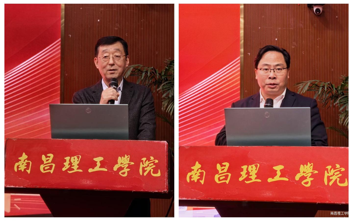 图为校学生资助服务中心主任陈之贵讲话(左)、学院党委书记徐贵冰致辞