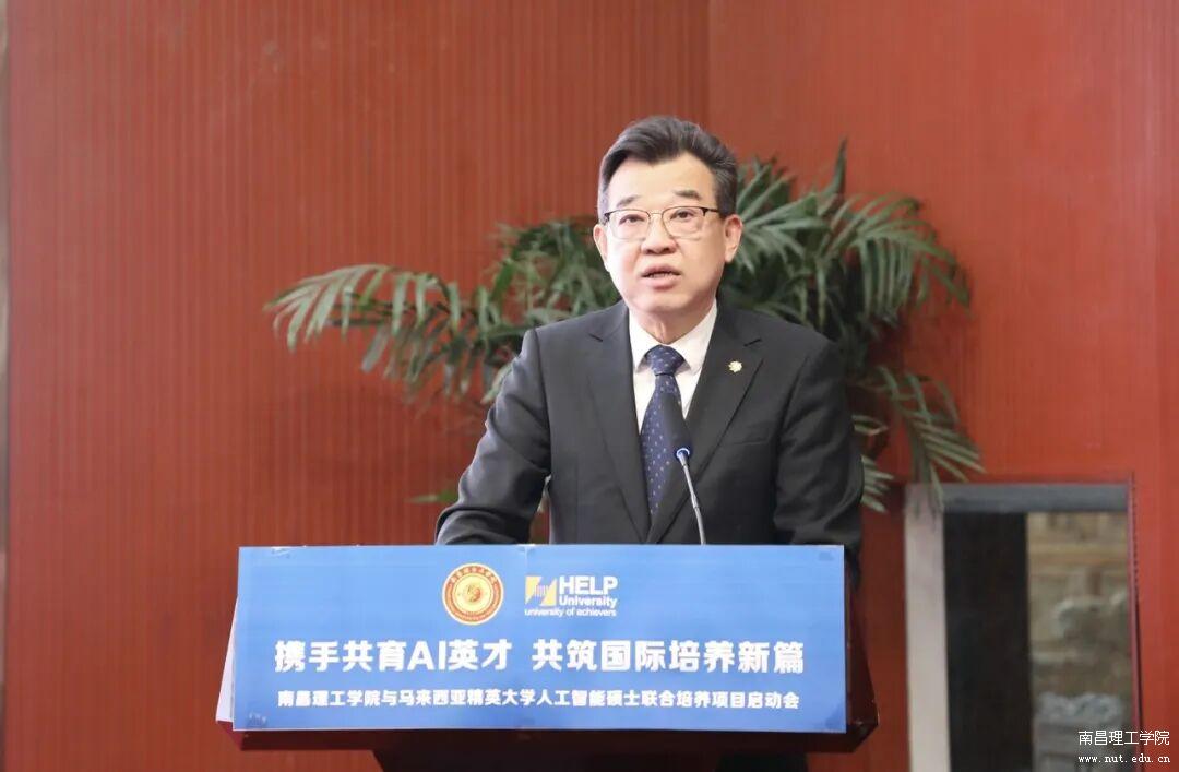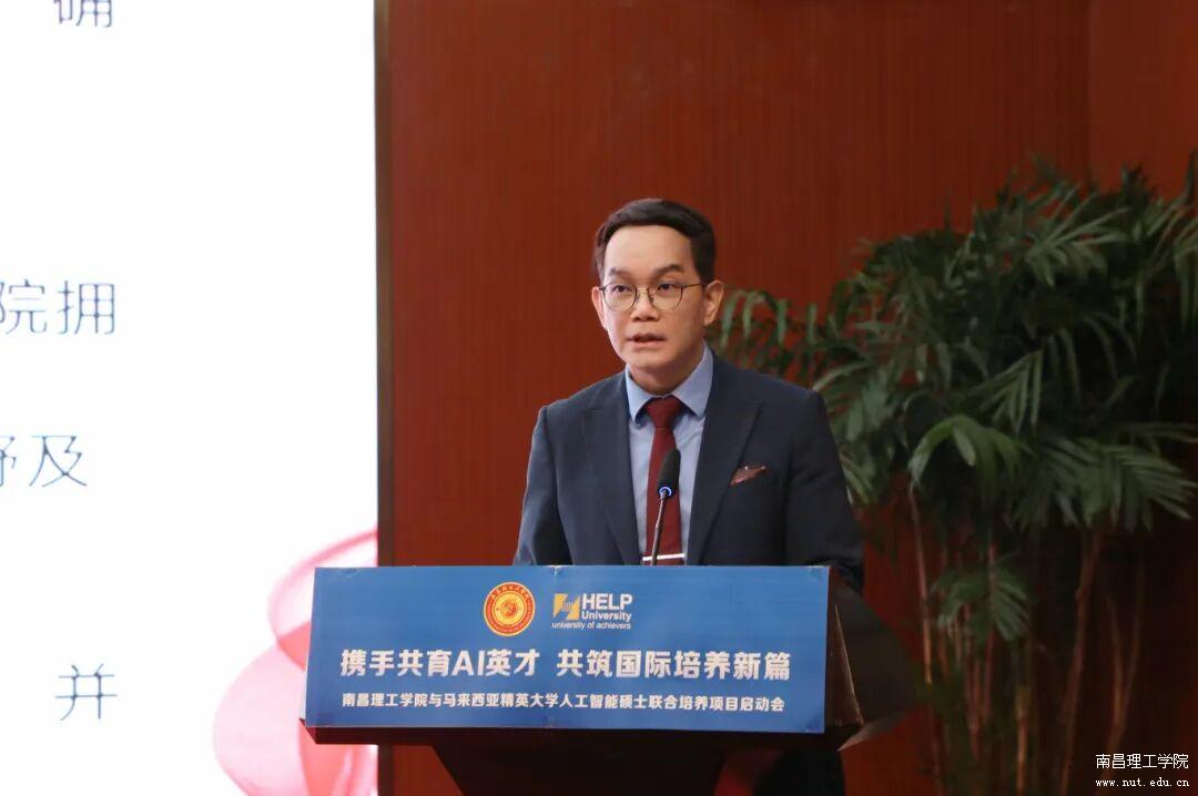 马来西亚精英大学校长刘德贵教授在致辞时表示,十分荣幸参与此次跨国合作启动仪式,人工智能硕士项目是两校合作的重要载体。马来西亚精英大学高度重视与南昌理工学院的合作,愿双方同心协力,搭建中马两国教育交流桥梁,成为携手奋进的长期战略伙伴,共同培育全球精英人才,树立国际教育合作典范。