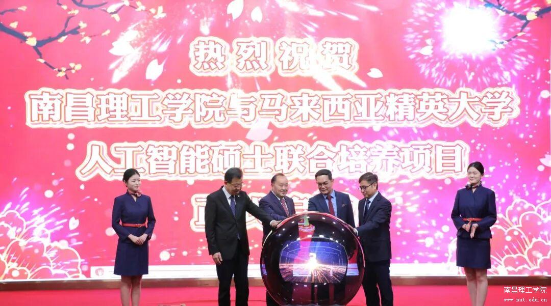 随后,南昌理工学院理事长邱小林教授、校长范彦斌教授与马来西亚精英大学校长刘德贵教授、计算与数字技术学院院长李志良教授共同完成项目启动仪式,全场掌声雷动。